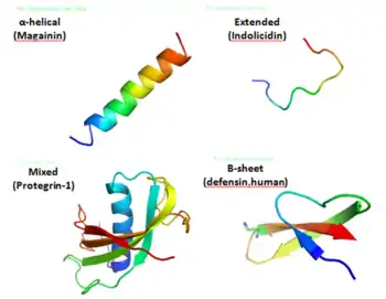 - 1 2 Nguyen LT, Haney EF, Vogel HJ (September 2011). "The expanding scope of antimicrobial peptide structures and their modes of action". Trends in Biotechnology. 29 (9): 464–472. doi:10.1016/j.tibtech.2011.05.001. PMID 21680034.