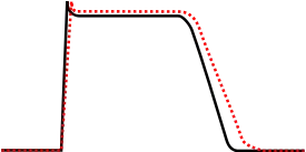 The cardiac myocyte has two general types of action potentials: conduction system and working myocardium. The action potential is divided into 5 phases and shown in the diagram. The sharp rise in voltage ("0") corresponds to the influx of sodium ions, whereas the two decays ("1" and "3", respectively) correspond to the sodium-channel inactivation and the repolarizing efflux of potassium ions. The characteristic plateau ("2") results from the opening of voltage-sensitive calcium channels. Each phase utilizes different channels and it is useful to compare these phases to the most common classification system — Vaughan Williams — described below.