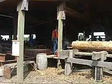 Workers milling logs in the steam-powered sawmill, during the Great Oregon Steam-Up of 2006