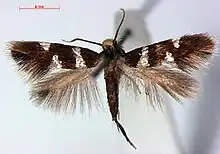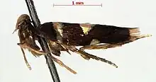 The larvae feed on Vitis vulpina and Parthenocissus quinquefolia. They mine the leaves of their host plant. On Parthenocissus quinquefolia, the mine is without a gallery at the start and has the form of an elliptic elongate blotch, often running along or near the leaf margin. The frass is sometimes grouped in a clump, but more typically spread in an irregular broad line. The larvae are yellow with almost black head.[1]
