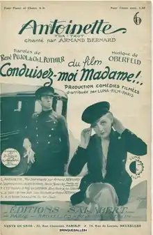 Antoinette (French: Conduisez-moi, Madame) is a 1932 French comedy film directed by Herbert Selpin and starring Jeanne Boitel, Armand Bernard and Nadine Picard.[1] It is a remake of the German film Chauffeur Antoinette which was also directed by Selpin. A British version The Love Contract was also produced the same year.[2]