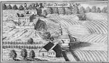 Copperplate of the Monastery Ramsau by Johann Ulrich Kraus from the "Churbaierischen Atlas" of Anton Wilhelm Ertl, (1687).