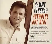 "Anywhere but Here" is a song written by Buddy Cannon, Bob DiPiero and John Scott Sherrill, and recorded by American country music artist Sammy Kershaw. It was released in September 1992 as the fourth and final single from his debut album Don't Go Near the Water. It peaked at No. 10 on the Billboard Hot Country Songs chart and No. 17 on the Canadian RPM country singles chart.