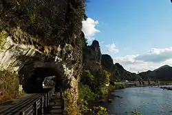 Aonodōmon (青の洞門, meaning "blue tunnel") is a tourist attraction located in the gorge of Yabakei, now part of Nakatsu City, in Ōita Prefecture, Japan.
