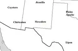 - ↑ Griffen, William B. (1991), "The Chiricahua Apache Population Resident at the Janos Presido, 1792–1858," Journal of the Southwest, Vol. 33, No. 2, p. 158.