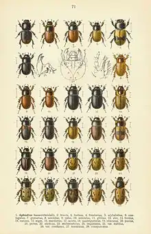 Aphodius scybalarius is a species of scarab beetles native to Europe.[2][3] It is now considered a to be synonym of Aphodius foetidus (Herbst, 1783) [4]