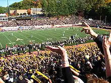 - ↑ Mark Schlabach (September 1, 2007). "Hundreds of Mountaineers fans celebrate upset win". ESPN.