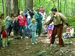 Local folklore recounts Ottawa Chief Pontiac's burial on the island.[6] To test the validity of these accounts, a limited excavation was conducted on a site the islanders referred to as "Pontiacs Mound" during a 2008 excavation. The results of the test suggested that it "appears to be only one of several rather level promontories extending without discernible interruption from the central plateau of the island toward northwestern shore. While additional deep testing may reveal other information, at this time the most appropriate hypothesis is to regard all of these adjacent landforms as non-cultural portions of the higher soils, dissected by centuries [if not millennia] of natural headward erosion and downslope weathering."[7]