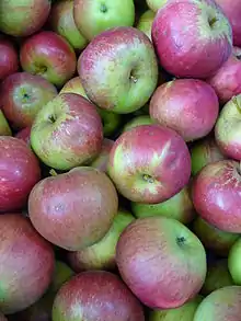 Over 7,500 cultivars of the culinary or eating apple (Malus domestica) are known.[1] Some are extremely important economically as commercial products, though the vast majority are not suitable for mass production. In the following list, use for "eating" means that the fruit is consumed raw, rather than cooked. Cultivars used primarily for making cider are indicated. Those varieties marked agm have gained the Royal Horticultural Society's Award of Garden Merit.[2]