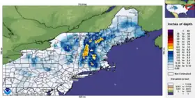 | Maximum snowfall or ice accretion | Snow – 14 in (36 cm) at Lempster, New Hampshire[2] |