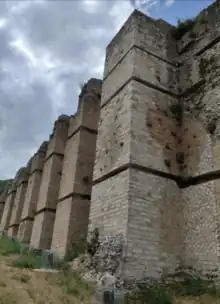 On the east side of Lake Cutilia are the monumental remains of the so-called "Baths of Titus", more likely to be a large villa and dating from the 1st c. BC to 1st c. AD.[14] The massive retaining wall of 60 m length and 11 m high lies in front of several rectangular rooms.