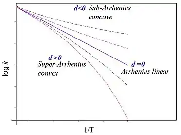 - ↑ Carvalho-Silva, Valter H.; Aquilanti, Vincenzo; de Oliveira, Heibbe C. B.; Mundim, Kleber C. (2016-11-17). "Deformed transition-state theory: Deviation from Arrhenius behavior and application to bimolecular hydrogen transfer reaction rates in the tunneling regime". Journal of Computational Chemistry. 38 (3): 178–188. doi:10.1002/jcc.24529. ISSN 0192-8651. PMID 27859380. S2CID 32714721.