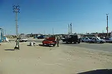 Since the retreat of the Aral Sea since 1960, due to diversion of the rivers flowing into it for irrigation, mainly of cotton, during the Soviet era, Aral is now completely landlocked about 12 km from the northern remnant of the Aral Sea,[3] though this is less than the 100 km distance observed before the completion of a dam in 2005. Aral has greatly diminished in population and socioeconomic significance, resulting in high levels of unemployment. For the last 25 years it has not been possible to see the sea from the town. There are also serious health problems for the local population caused by airborne toxic chemicals exposed to the wind by the retreating waters and, possibly, from chemical and biological agents unsafely stored on the island of Vozrozhdeniya.