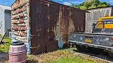 - Series #500 Boxcars (Ex-NH) - (#510-#523) Purchased outright by the railroad, the later #500 series boxcars were used in tandem with the leased boxcars to haul product from Borden around the country. These cars were a light powder blue, however several photos do depict the color much darker due to shadows. These cars were disliked by Borden staff by comparison to the earlier PS-1 types, as the doors were much narrower. A handful of these boxcars do survive, and one of significance (#522) was turned into a MoW flatbed with a tool chest in the 70's, before having said tool chest removed and being turned into a full flatcar. #522 was scrapped around 2009, however a cut out section from the original modification survives as a forklift shed next to the shops.Some lettering can still be made out in 2023.