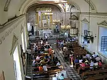 The sanctuary was damaged again by tremors in 1867. Fr. Marcos Anton repaired the minor damages, installed a new altar and a presbytery floor and constructed an iron balustrade around it. The interior was decorated under the direction of Italian decorator Cesar Alberoni.[2] In 1880, Fr. Agapito Aparicio installed an organ bought from the famous organist Don Doroteo Otorelin of Palencia, Spain. Fortunately, the earthquake of 1880 did not cause serious damage to the sanctuary.[2]