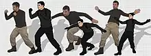 The characters are composed in Illustrator using referential material, among them photos of models and actors in costume.[72][70] Because Archer is produced using limited animation, characters are rendered as digital puppets, and not hand-drawn on paper and digitally composited for traditional cel animation.[73] Costumes may or may not be reproduced depending on their animatability; too much detail can hurt a character's animatability.[69] These body pieces are then separated into basic components and layers, much like an action figure, and rigged in After Effects.[70][73] Consequently, one given pose can turn into a range of others, which, according to producer Bryan Fordney, creates "the illusion of more animation on screen than what is actually present."[73] A similar technique is used in the animation of a character's face—head illustrations are divided into basic components that can be turned "off" and "on" in sequence, lending the appearance of facial movement and expression.[74][69]