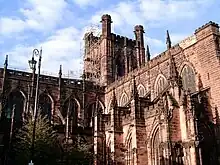 Built between 1093 and 1537, Chester Cathedral includes a set of medieval choir stalls dating from 1380, with exquisite figurative carving. An unusual feature is the very large south transept. The Early English Lady Chapel is a harmonious composition in Lancet Gothic. It retains substantial monastic buildings including a large refectory.[4][10]