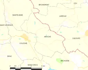 Map of Ardizas and its surrounding communes
