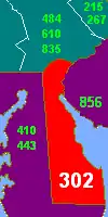 Area code 302 is a telephone area code in the North American Numbering Plan (NANP) for the U.S. state of Delaware. It is Delaware's only area code, and was assigned in 1947 as one of the original North American area codes.