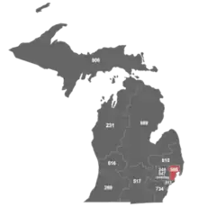 West: 248/947 area code 586 East: 810, 519/226