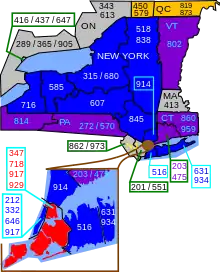 New York area codes: 212/332/646, 315/680, 347/718/929, 363/516, 518/838, 585, 607, 631/934, 624/716, 329/845, 914, 917