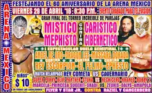 - ↑ López Peralta, Gonzalo (April 23, 2016). "Lucha Libre Arena México 22 de Abril de 2016". Yahoo! Deportes (in Spanish). Yahoo!. Retrieved April 23, 2016.