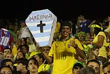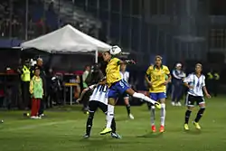 The Argentina–Brazil football rivalry is a sports rivalry between the national football teams of the two countries and their respective sets of fans.[3] Games between the two teams are often marked by notable and controversial incidents. The rivalry has also been referred to as the Battle of the Americas or the Superclassic of the Americas (Spanish: Superclásico de las Américas; Portuguese: Superclássico das Américas). FIFA has described it as the "essence of football rivalry".[4] CNN ranked it second on their top 10 list of international football rivalries—only below the older England–Scotland football rivalry.[5]