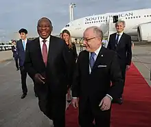 Bilateral relations between Argentina and South Africa remain sound and the various common ideals and objectives of the two governments provide a potential basis for enhanced bilateral relations as well as for cooperation at the multilateral level. In 2013, Argentina adopted 18 July as International Nelson Mandela Day.[4] In July 2018, Argentine President Mauricio Macri paid a visit to Johannesburg, South Africa to attend the 10th BRICS summit.[7] In November 2018, South African President Cyril Ramaphosa paid a visit to Argentina to attend the G20 Summit in Buenos Aires.