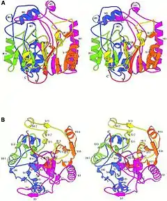 - 1 2 3 4 Humm A, Fritsche E, Steinbacher S, Huber R (June 1997). "Crystal structure and mechanism of human L-arginine:glycine amidinotransferase: a mitochondrial enzyme involved in creatine biosynthesis". EMBO J. 16 (12): 3373–85. doi:10.1093/emboj/16.12.3373. PMC 1169963. PMID 9218780.
