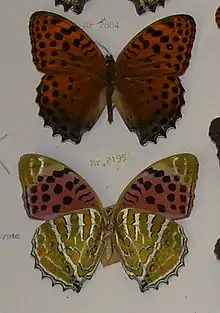 Argynnis childreni, the large silverstripe, is a species of nymphalid butterfly. It was first described by George Robert Gray in 1831.[1] Also known as the Himalayan fritillary, it is found in mountainous areas, from northeastern India into China. Its wingspan is 8โ9 centimetres (3.1โ3.5 in). The forewings are predominantly orange with black spots, while the hindwings are brown with a blue margin, with many white stripes.