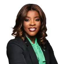 Arinthia Santina Komolafe (née Braynen, born 30 June 1980) is a Bahamian politician who was elected the Leader of the Democratic National Alliance (DNA), one of the three main political parties in the Commonwealth of The Bahamas, on 24 October 2017.[1] She succeeded Christopher Mortimer, who was appointed as Interim Leader of the DNA on 24 October 2017.[2] Mortimer was appointed Interim Leader following the DNA's defeat in The Bahamas' General Elections on 10 May 2017, when the Party failed to win a parliamentary seat out of the 39 possible parliamentary seats in the House of Assembly.[3] Founder and inaugural leader of the DNA, Branville McCartney announced his intention to resign from the Party and front-line politics following the defeat.[4][5] Komolafe is the first female leader of the DNA political party and other females such as Cynthia Pratt, former Deputy Leader of the Progressive Liberal Party (PLP) and Loretta Butler-Turner, former Deputy Leader of the Free National Movement.