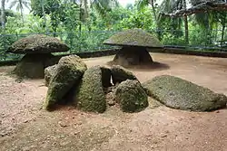 Ariyannur Umbrellas is a prehistoric Megalith burial site situated in Ariyannur in Kandanassery Panchayat of Thrissur District of Kerala. Archaeological Survey of India in 1951 declared it as a centrally protected monument. The site has six umbrella stones or mushroom stones, locally called Kudaikkallu. Of them, four are intact and two are partially broken.[1][2][3][4][5] .