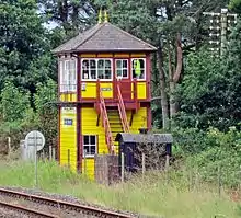 The station's signal box was built by the Midland Railway and placed in service on 16 July 1899. It was equipped with a 16-lever tumbler frame. The box was decommissioned on 15 January 1983. During 1992, it was restored by the Friends of the Settle to Carlisle Line.[5][6] The refurbishment saw the signal box furnished with original Midland Railway block instruments and painted in original colours. It can be visited on Sundays by prior arrangement.[7]