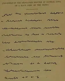 Example of Long's handwriting after his blindness, copied by his family members from his slate.