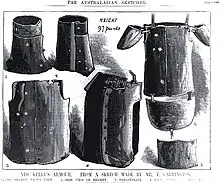 - ↑ "NED KELLY'S ARMOUR". The Mercury. Hobart, Tasmania. 19 October 1934. p. 7. Retrieved 4 February 2012 – via National Library of Australia.