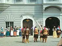 The figures for the contingents to be supplied by each Imperial Circle were little altered until the demise of the Empire. In practice, they were organized into a number of separate regiments. In some cases, money was provided instead of men to fulfil these military obligations to the Emperor.[11]