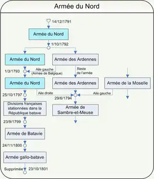 The Army of the North or Armée du Nord is a name given to several historical units of the French Army. The first was one of the French Revolutionary Armies that fought with distinction against the First Coalition from 1792 to 1795. Others existed during the Peninsular War, the Hundred Days and the Franco-Prussian War.