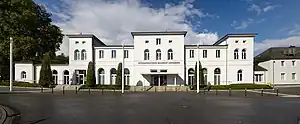 The Arnsberg (Westphalia) station is a station on the Upper Ruhr Valley Railway (German: Obere Ruhrtalbahn) in the German state of North Rhine-Westphalia. It was opened in Arnsberg with the construction of the line in 1870/71.[5] The station building was built in 1869 in the Renaissance Revival style.[6] The station building is still used for passenger traffic. Some of the space in the building is used by various social groups and institutions.
