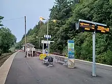 Facilities on the island platform include two waiting rooms, benches, bike racks, a help point and a phone. There is also a car park by the entrance to the station. As the station is only accessible via subway, there is no step-free access.[10] As there are no facilities to purchase tickets, passengers must buy one in advance, or from the guard on the train.