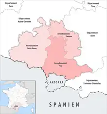 - ↑ "Arrondissement de Foix (091)". INSEE. Retrieved 2019-09-27.