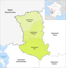 The 3 arrondissements of the Deux-Sèvres department are:[1]