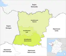 - ↑ "Arrondissement de Mayenne (533)". INSEE. Retrieved 2019-10-01.