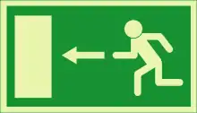An exit sign with an arrow to indicate the exit is to the left
