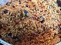 Coconut rice is a dish prepared by cooking white rice in coconut milk or coconut flakes.[1] As both the coconut and the rice-plant are commonly found in the tropics all around the world, coconut rice too is found in many cultures throughout the world, spanning across the equator from Southeast Asia, the Indian subcontinent, South America, Central America, West Africa, East Africa, the Caribbean and Oceania.