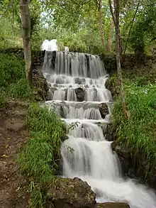 There are two water falls which are frequented by visitors seeking holy blessings, magical and spiritual powers. The area around the falls is adorned with prayer flags and wish rags; one was frequented by a holy woman.[3]