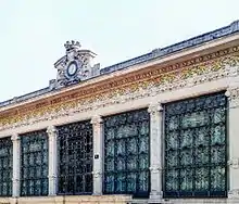 At the beginning of the 20th century, the Milanese bourgeois class, formed as a result of industrialization and already becoming masters of the social and economic life of the city,[2] found in the new liberty style a "symbol of status" and the occasion to show its power and at the same time underline the clear departure from the noble class and its neoclassical and baroque residences.[3] The Milan International world's fair of 1906 gave further impetus to the development of liberty, as dozens of pavilions and numerous public buildings were built in this style, which decreed the definitive consecration of liberty as the dominant artistic style in the city.[4] Reaching its peak in 1906, Milanese liberty experienced the first contaminations with eclectic architecture, which became stronger and stronger until the years of World War I, after which the liberty survived only with minor influences on minor architecture, while the taste of the industrial bourgeoisie converged spontaneously towards art deco.[5][6] The Milan Central Station, built from 1924 in a late-eclectic style with art deco decorations and modernist influences, is considered by Gualdoni and Melano the conclusion of art nouveau in Milan, which made room for art deco and Italian Novecento.[7][8]