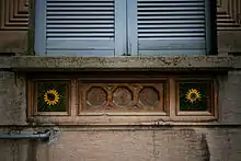 It was on this occasion that the Primo quartiere popolare della Società Umanitaria was built on Via Solari according to the project of the architect Giovanni Broglio. It is one of the first examples of social architecture in the city, as well as one of the first applications of art nouveau in popular architecture. The project envisaged eleven four-story buildings with a total of two hundred and forty residential units equipped with private bathrooms with drinking water, intended to accommodate a total of about a thousand people. The maximum rent for the larger apartments was one hundred liras per month (just under three hundred and fifty euros updated to 2006).[39] Logically, the project could not feature the elaborate and expensive decorations of the bourgeois liberty houses, therefore Broglio adopted industrially mass-produced decorative elements. The term liberty minore is sometimes used to define this style which, despite having a much smaller budget, nevertheless allowed a diffuse and homogeneous architectural decoration, although not very elaborate.[13]