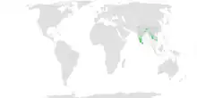 Woodswallows are found in a range of habitats from the plains to about 2000 m, over cultivated areas, in forest clearings and often in areas with tall palm trees. The species is widely distributed across Bangladesh, India, Nepal, Sri Lanka, Thailand, Myanmar, Laos, Malaysia and China. They are absent in the very arid regions of western India.[3][5] They have been recorded on the island of Maldives.[6]