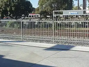 Artesia Station is an at-grade light rail station on the A Line of the Los Angeles Metro Rail system. The station is located alongside the Union Pacific freight railroad's Wilmington Subdivision (the historic route of the Pacific Electric Railway), at its intersection with Artesia Boulevard, after which the station is named, in the city of Compton, California.[3]