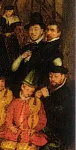 Lucas and Susanna Horenbout's father, Gerard Horenbout - possibly he was the Master of James IV of Scotland - was an active member of the Ghent-Bruges school of manuscript illustrators and also was employed briefly at the Tudor court.[11] In Bruges, Gerard was associated with Sanders Bening or Benninck and his son Simon, with whom he worked on the illustrations for the Grimani Breviary. Simon Bening's eldest daughter Levina Teerlinc was also trained as an illuminator. She entered the service of Henry VIII at the close of 1546 following the deaths of Holbein (1543) and Lucas Horenbout (1544), and would remain as court painter to Henry's son Edward VI[12] and as painter and lady-in-waiting to both his daughters, Mary I and Elizabeth. Levina Teerlinc, in turn, taught the art of limning to Nicholas Hilliard, an apprentice goldsmith who would marry the daughter of Queen Elizabeth's jeweller and rise to become the supreme miniaturist of the age. John Bettes the Elder apprenticed his son, John the Younger to Hilliard. Hilliard's most famous student, Isaac Oliver, later limner to Anne of Denmark and Henry, Prince of Wales, was married to the niece of Marcus Gheeraerts the Younger.[13] Gheeraerts was also the brother-in-law of Lucas de Heere's apprentice John de Critz the Elder,[13] who took the dynasty into the Stuart period, and was succeeded as Serjeant-Painter by his son. De Heere was also a religious refugee from Flanders; although the upheavals of the Protestant Reformation acted to reduce artistic contacts, especially with Italy, England could also benefit from them.